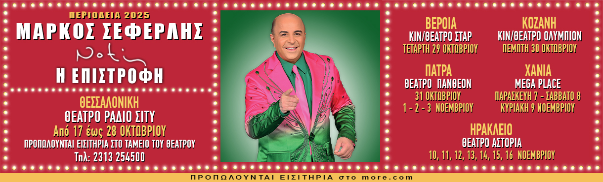 Ο Μάρκος Σεφερλής είναι Έλληνας ηθοποιός, συγγραφέας, σκηνοθέτης και παραγωγός. Γεvνήθηκε στις 8 Σεπτεμβρίου 1968 και σπούδασε στην Ανωτέρα Σχολή Δραματικής Τέχνης Μαίρης Βογιατζή - Τράγκα...